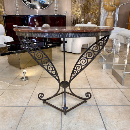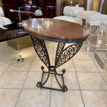 Petite console ovale en fer forgé et marbre d'époque Art Deco 1930
