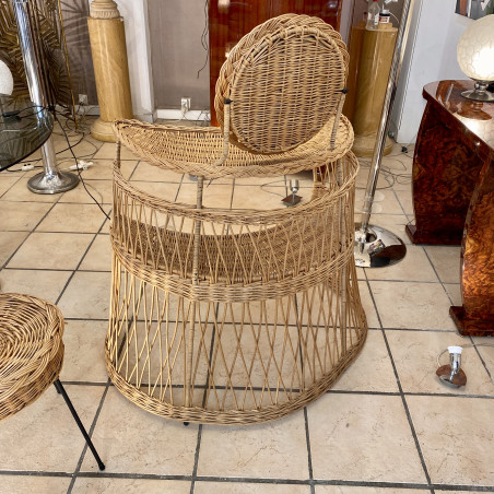 Coiffeuse en osier de Louis Sognot d'époque 1950